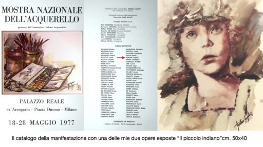 Partecipai con due opere, Il “Piccolo Indiano” cm. 50×40 e “La città che avanza” cm.70×100, alla Mostra Nazionale dell’Acquerello con esposizione all’Arengario di Milano e ad un’altra esposizione presso l’Ente del Turismo, sempre a Milano, allora situato ove ora sorge il Museo del 900, manifestazioni organizzate dall’Associazione Italiana Acquerellisti.