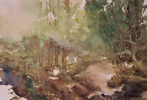In questo acquarello ho scelto di lavorare con un approccio istintivo, lasciando che l’acqua e i colori trovassero il loro equilibrio naturale sulla carta.
