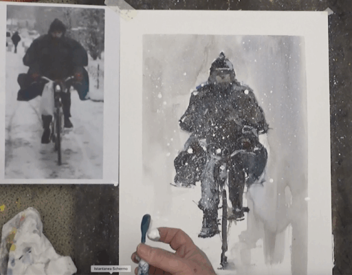 - Nel secondo la realizzazione di una figura di dim cm 50×35, a carattere invernale con nevicata finale della durata di min 20′ 15”.